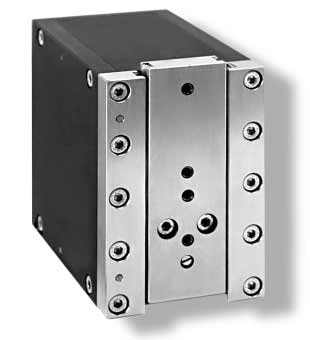 This electronically positionable roller track guide with ball screw drive is mainly used for focusing optical components and simultaneously measuring the focused planes.