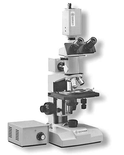 Item No. 21621 | Basic microscope without objectives, with splitter attachment, colimator, 90 ° deflection and CCD board camera | ||